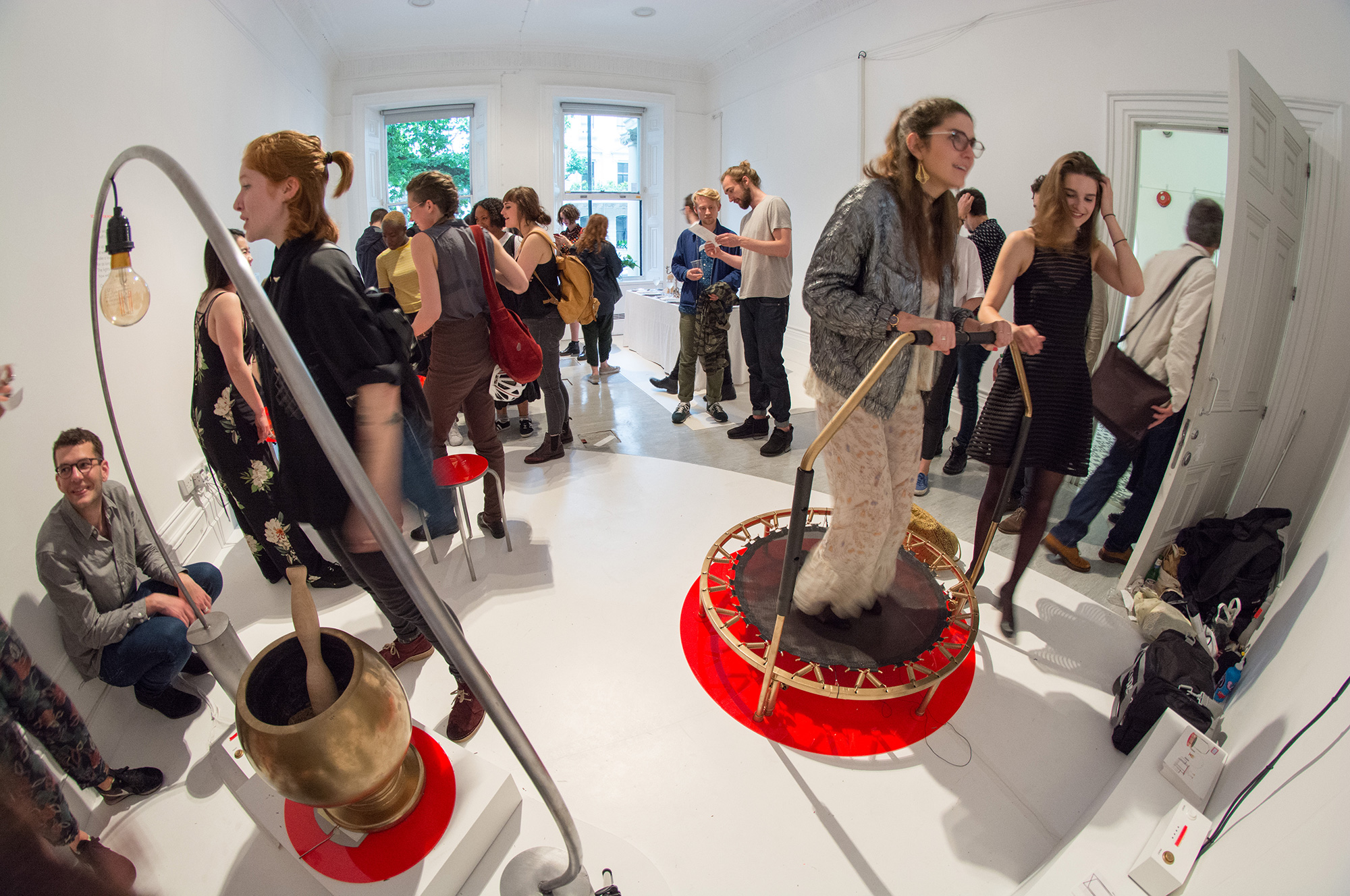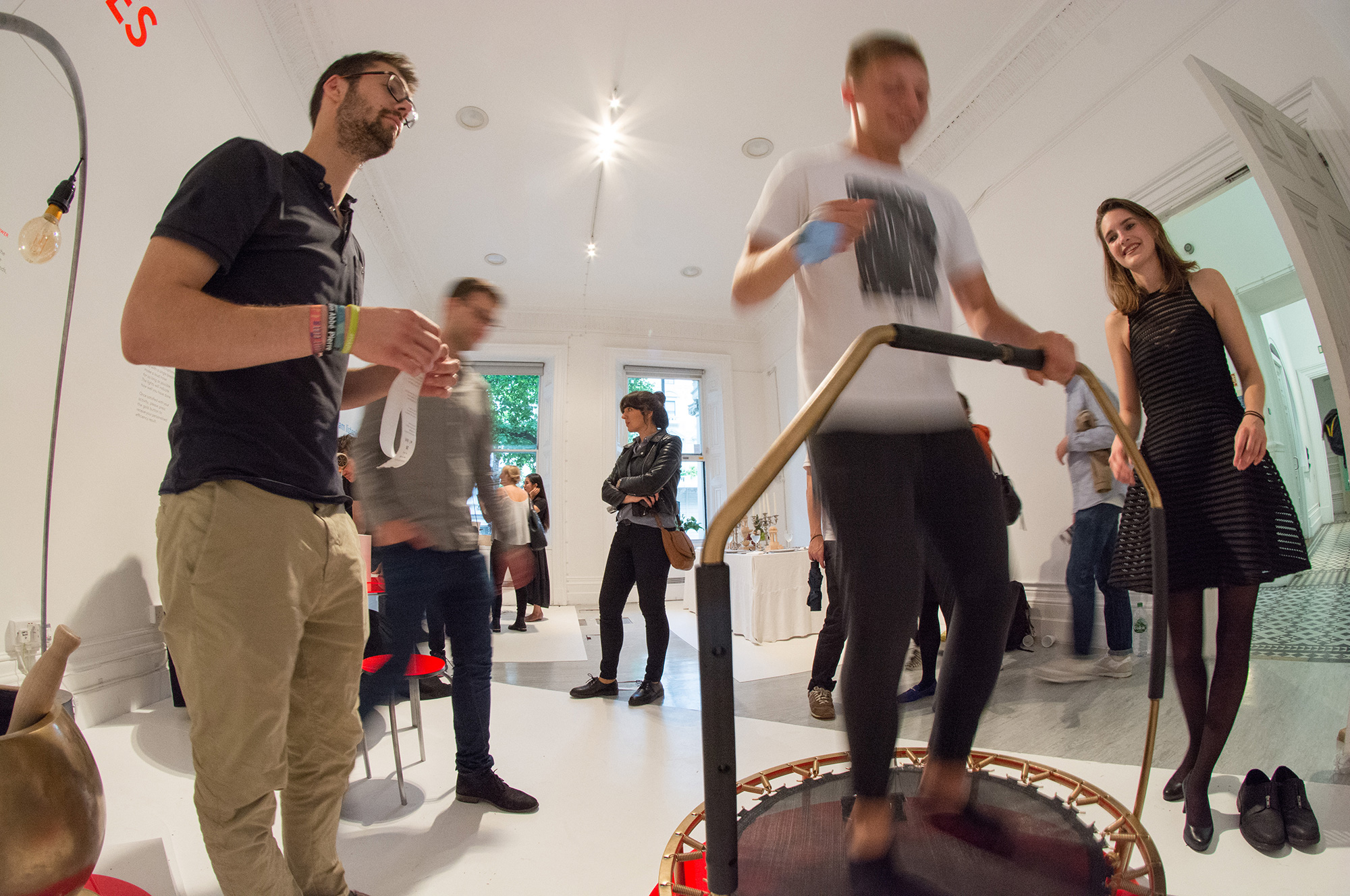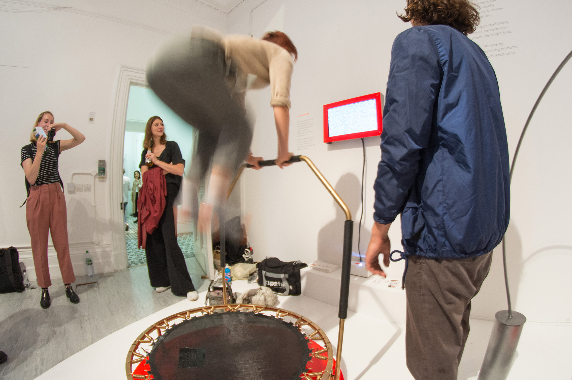 Participants perform repetitive, exaggerated bodily movements to understand the effort necessary to power something taken for granted, like a light bulb.