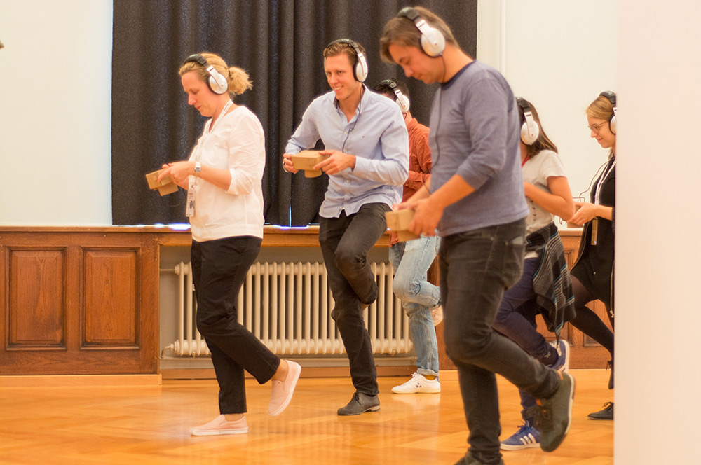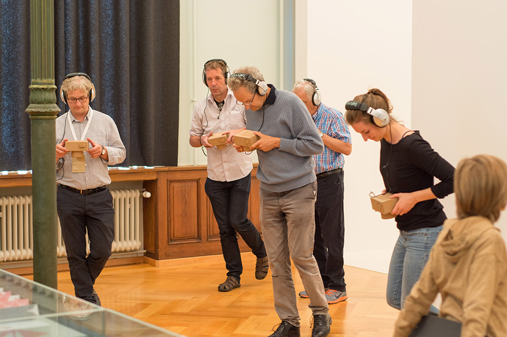 Jeder Besucher erhält bei Betreten der Ausstellung eine Kamera mit integrierter Webcam sowie Kopfhörer. Via Kopfhörer bekommt er laufend Instruktionen, auf welches Objekt er die Kamera richten soll. Alle Besucher führen die Befehle gleichzeitig aus. Dabei entsteht eine synchrone Choreografie im Raum – eine Serie von Sequenzen.