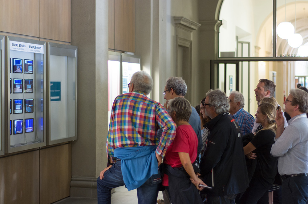 Die Webcams übertragen die Videostreams der synchronen Bewegungen der Besucher auf 12 Bildschirme. Diese befinden sich im Foyer des Museums, wo sich die Performance live von Besuchern der Langen Nacht der Zürcher Museen verfolgen lässt.